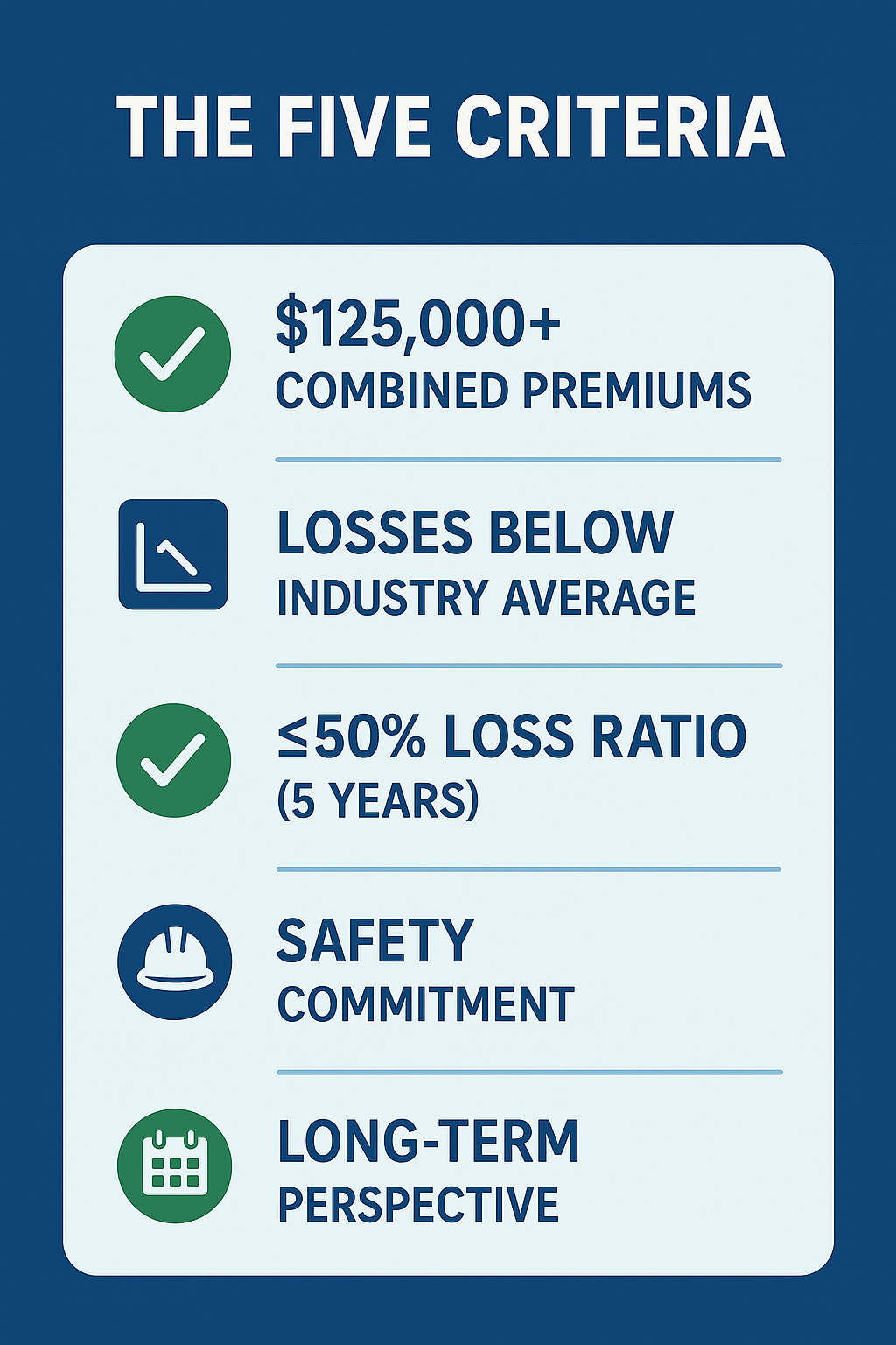 If you're paying at least $125,000 in combined premiums, running a safer-than-average operation, maintaining a loss ratio at or below 50%, and committed to long-term safety improvement, you owe it to your business to explore whether a group captive makes sense.